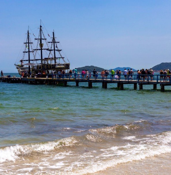 El Paseo del Barco Pirata de Canasvieiras es una de las atracciones más populares del norte de Florianópolis. A bordo de embarcaciones temáticas, los visitantes disfrutan de un recorrido por las playas y bahías de la región, con música, animación y espectáculos al estilo pirata. Diversión garantizada para toda la familia.